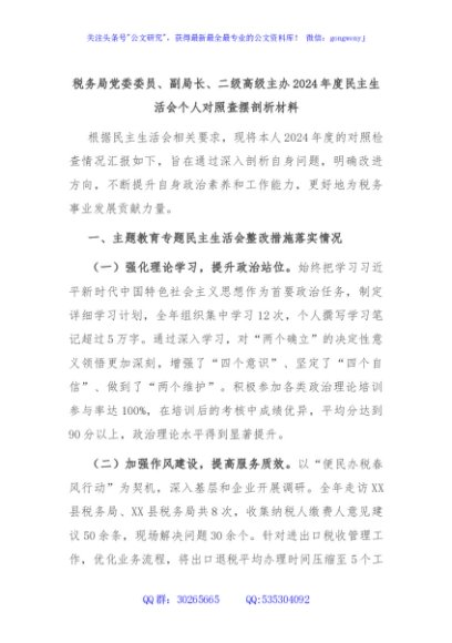 / 税务局党委委员、副局长、二级高级主办2024年度民主生活会个人对照查摆剖析材料