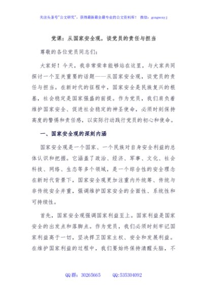党课:从国家安全观,谈党员的责任与担当