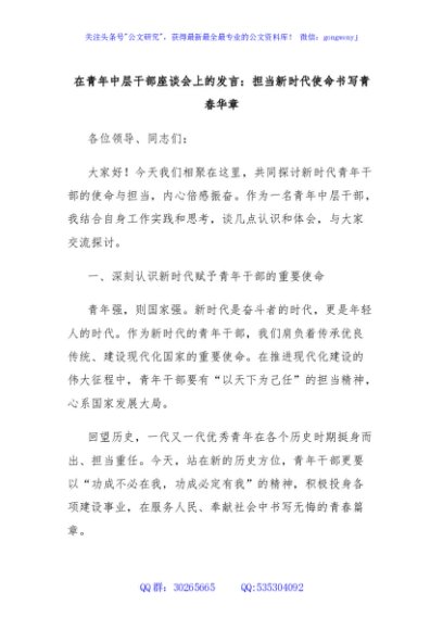 / 在青年中层干部座谈会上的发言:担当新时代使命书写青春华章