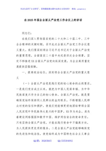 / 在2025年国企全面从严治党工作会议上的讲话
