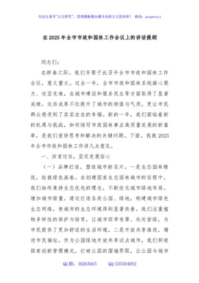 / 在2025年全市市政和园林工作会议上的讲话提纲