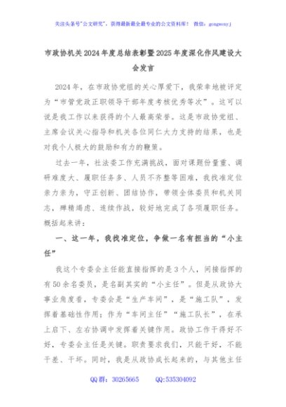 / 市政协机关2024年度总结表彰暨2025年度深化作风建设大会发言