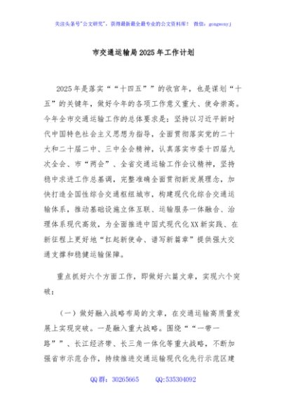 / 市交通运输局2025年工作计划