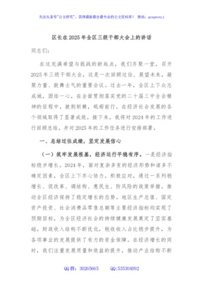 / 区长在2025年全区三级干部大会上的讲话