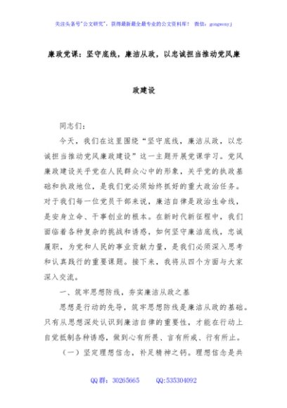 / 廉政党课:坚守底线,廉洁从政,以忠诚担当推动党风廉政建设