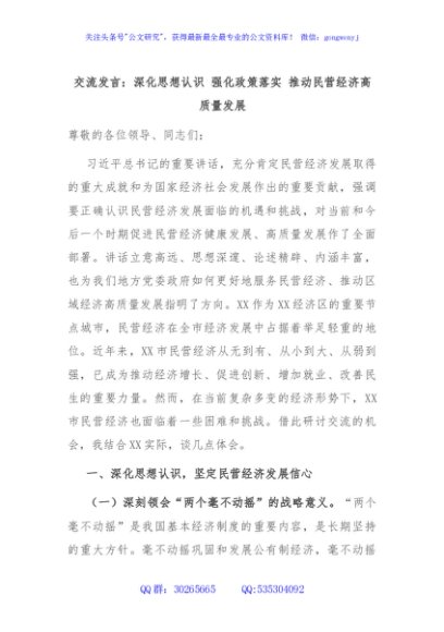/ 交流发言:深化思想认识 强化政策落实 推动民营经济高质量发展