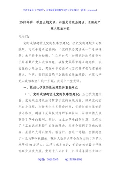 2025年第一季度主题党课:加强党的政治建设,永葆共产党人政治本色