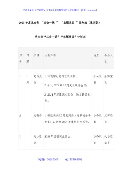 / 2025年度党支部 “三会一课 ” “主题党日 ”计划表(通用版)