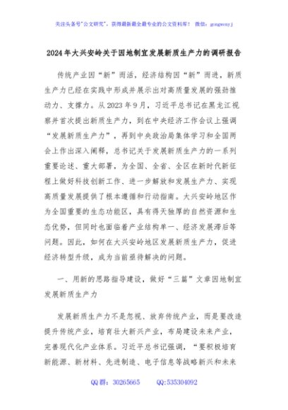/ 2024年大兴安岭关于因地制宜发展新质生产力的调研报告