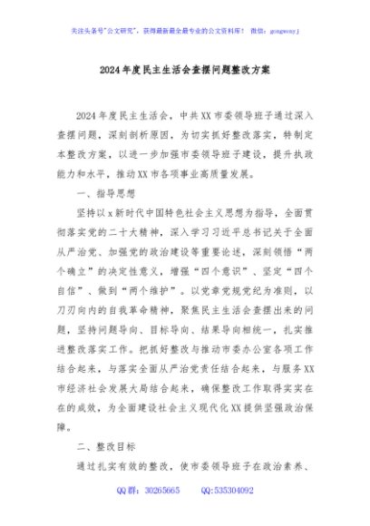 / 2024年度民主生活会查摆问题整改方案