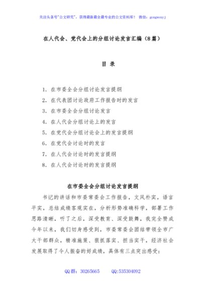 / (8篇)在人代会、党代会上的分组讨论发言汇编