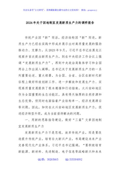 / 2024年关于因地制宜发展新质生产力的调研报告