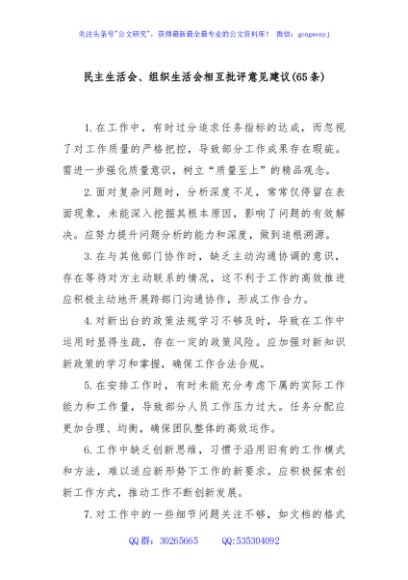 / (65条)民主生活会、组织生活会相互批评意见建议