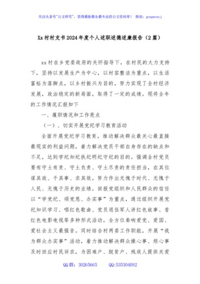 (2篇)Xx村村支书2024年度个人述职述德述廉报告