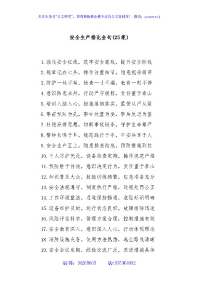 / (25组)安全生产排比金句