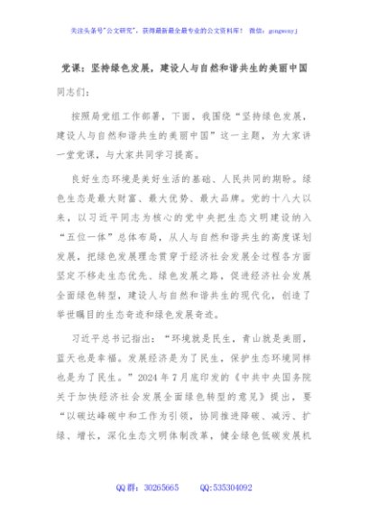 党课:坚持绿色发展,建设人与自然和谐共生的美丽中国