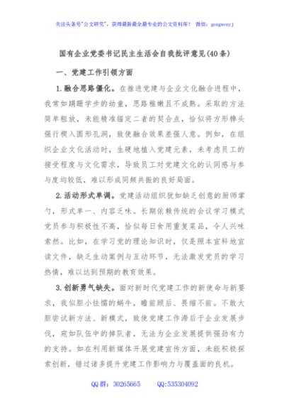 / (40条)国有企业党委书记民主生活会自我批评意见