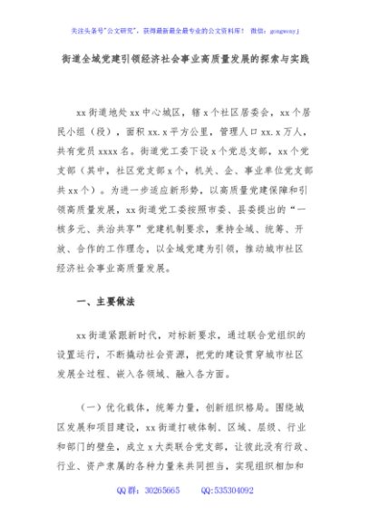 / 街道全域党建引领经济社会事业高质量发展的探索与实践
