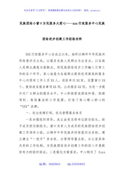 / 民族团结小窗口为民服务大爱心——xxx行政服务中心民族团结进步创建工作经验材料