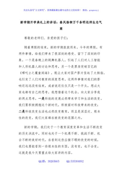 / 新学期开学典礼上的讲话:春风杨柳万千条明远师生志气高