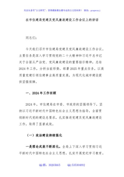 / 在市住建局党建及党风廉政建设工作会议上的讲话