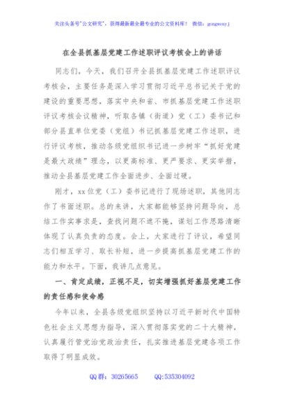 / 在全县抓基层党建工作述职评议考核会上的讲话