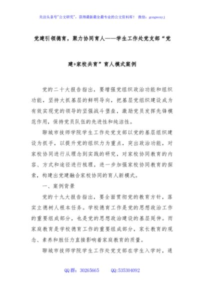 / 党建引领德育,聚力协同育人——学生工作处党支部“党建+家校共育”育人模式案例