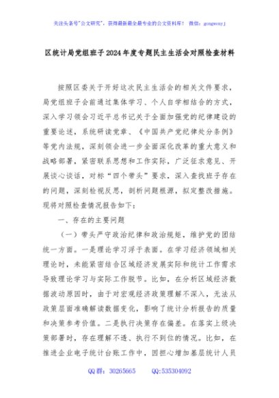 / 区统计局党组班子2024年度专题民主生活会对照检查材料