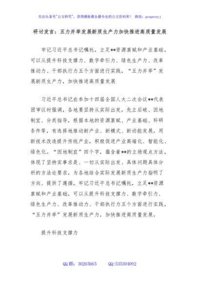 / 研讨发言:五力并举发展新质生产力加快推进高质量发展