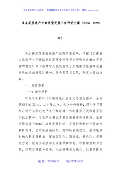 / 某某县旅游产业高质量发展三年行动方案(2025—2028年)