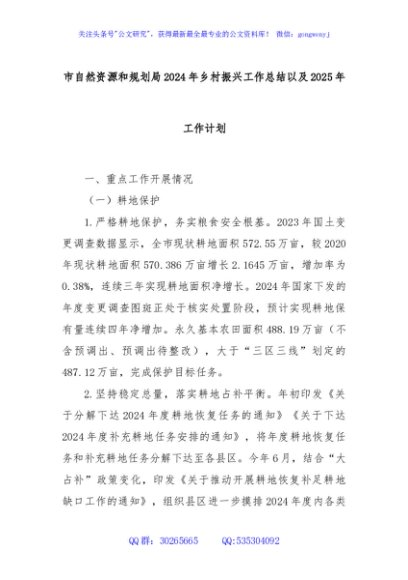 / 市自然资源和规划局2024年乡村振兴工作总结以及2025年工作计划