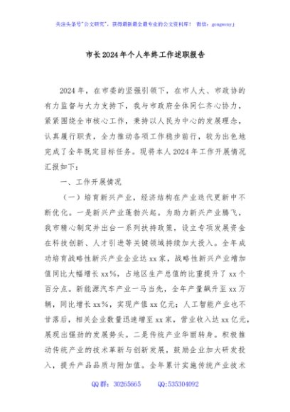/ 市长2024年个人年终工作述职报告