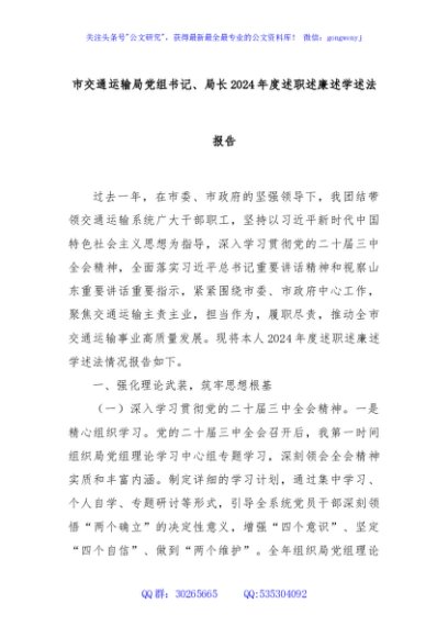 / 市交通运输局党组书记、局长2024年度述职述廉述学述法报告