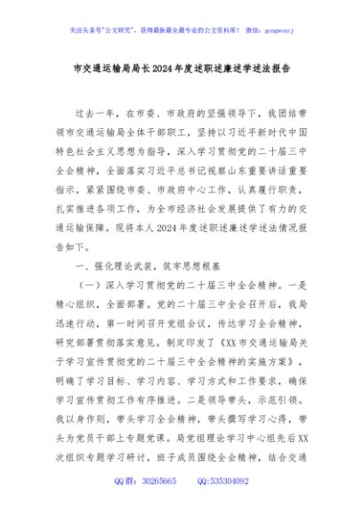 / 市交通运输局局长2024年度述职述廉述学述法报告