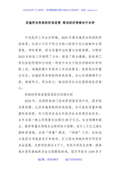 / 实施更加积极的财政政策 推动经济持续回升向好