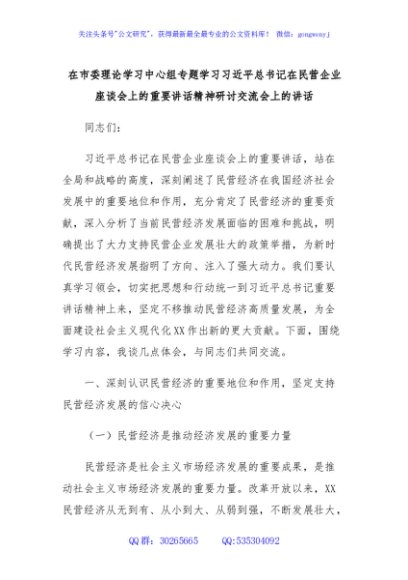 / 在市委理论学习中心组专题学习习近平总书记在民营企业座谈会上的重要讲话精神研讨交流会上的讲话