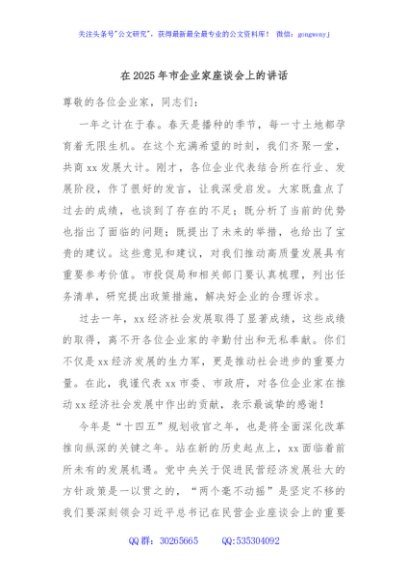 / 在2025年市企业家座谈会上的讲话