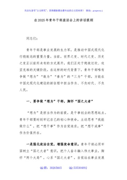 / 在2025年青年干部座谈会上的讲话提纲