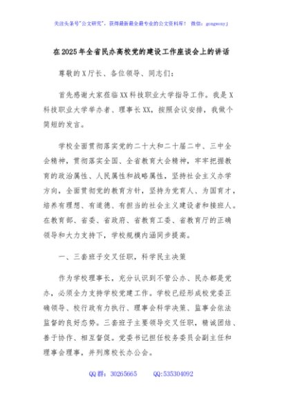 / 在2025年全省民办高校党的建设工作座谈会上的讲话
