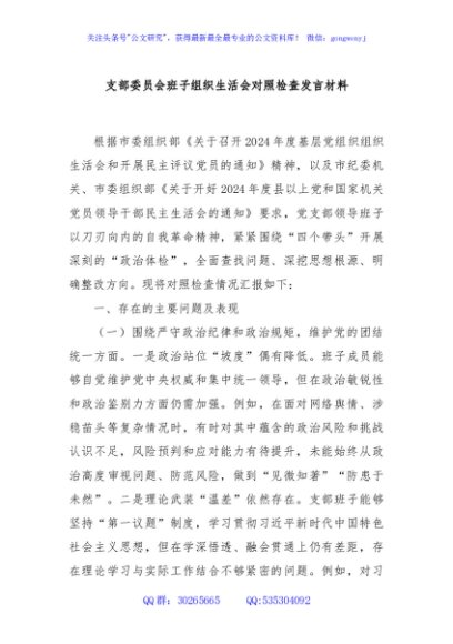 支部委员会班子组织生活会对照检查发言材料