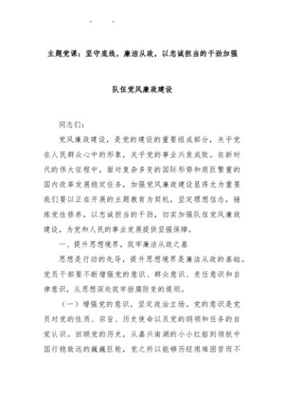 主题党课:坚守底线,廉洁从政,以忠诚担当的干劲加强队伍党风廉政建设