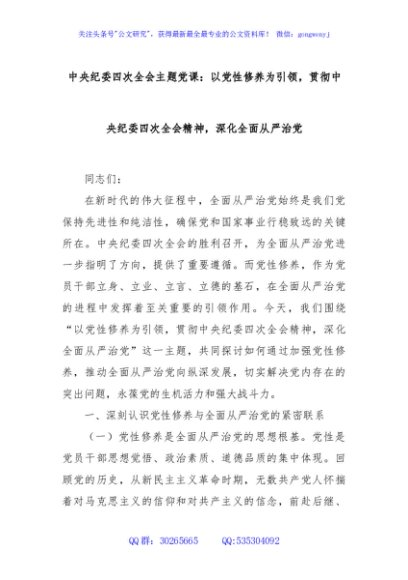 / 中央纪委四次全会主题党课:以党性修养为引领,贯彻中央纪委四次全会精神,深化全面从严治党