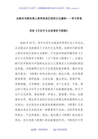 / 在新时代新征程上高举起我们党的文化旗帜——学习好使用好《习近平文化思想学习纲要》