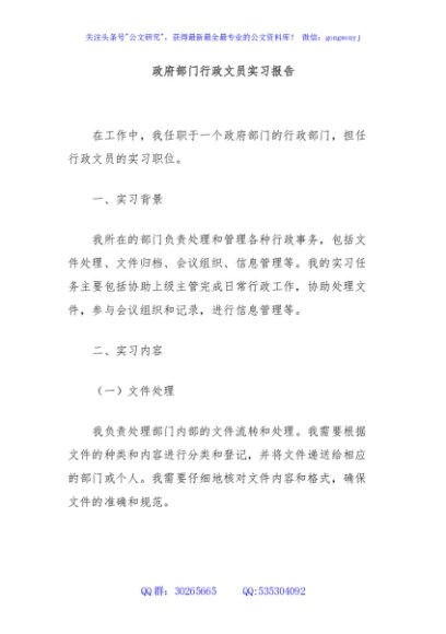 / 政府部门行政文员实习报告