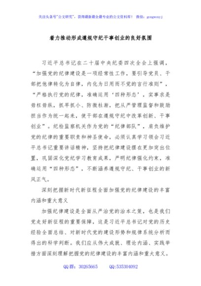 / 着力推动形成遵规守纪干事创业的良好氛围