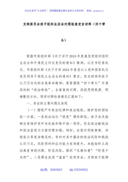 / 支部委员会班子组织生活会对照检查发言材料(四个带头)