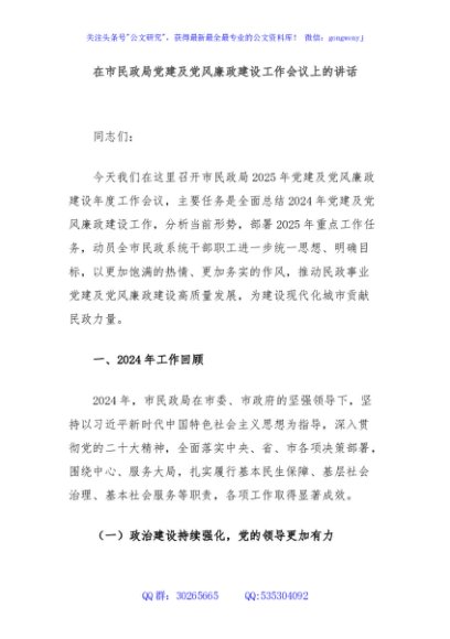 / 在市民政局党建及党风廉政建设工作会议上的讲话