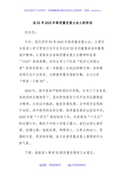 / 在XX市2025年高质量发展大会上的讲话
