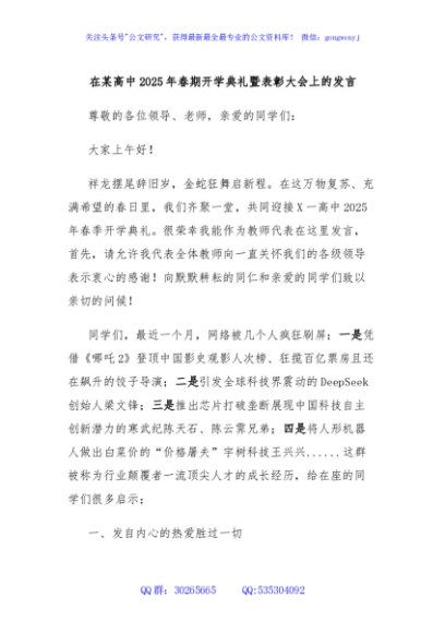 / 在某高中2025年春期开学典礼暨表彰大会上的发言