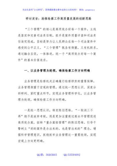 / 研讨发言:助推检察工作高质量发展的创新思路